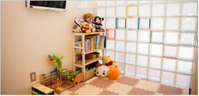 待合室にはキッズスペース、トイレにはベビーシートやおむつ台を設けておりますので小さいお子様も安心して受診できます。